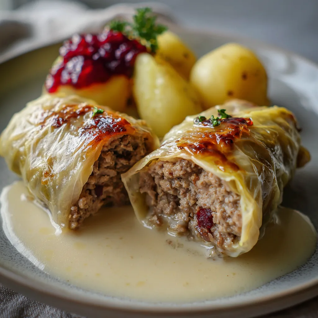 Nu är dina kåldolmar med köttfärs klara att serveras! Njut av dem med lingonsylt för en klassisk svensk smakupplevelse.